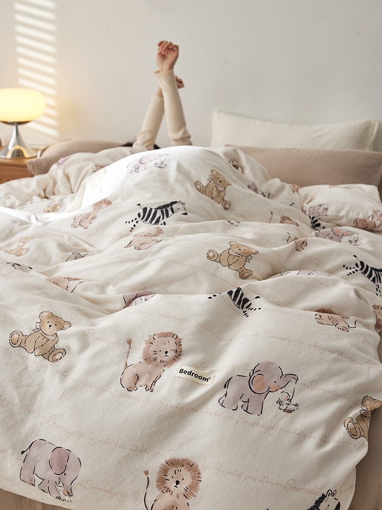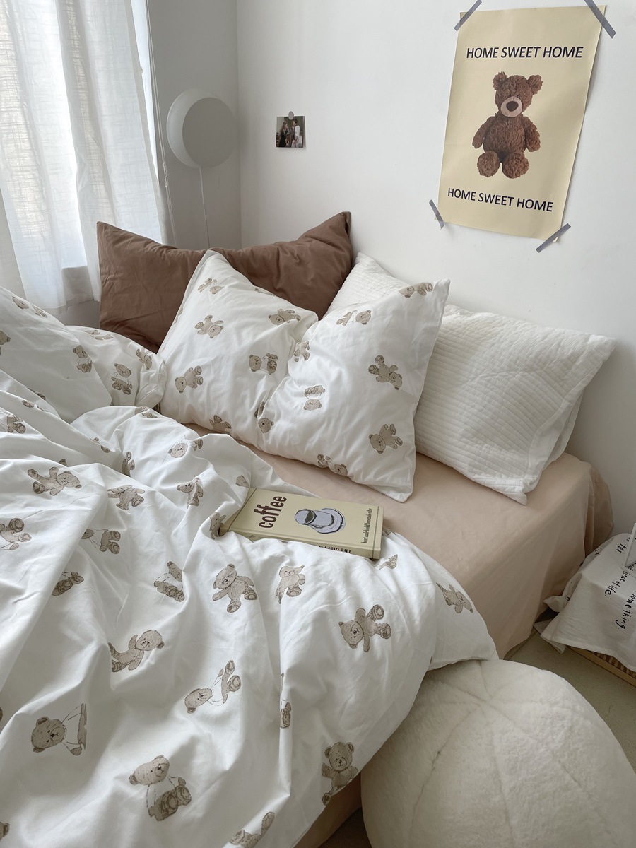 純綿4点セット子供用アニメ熊シーツ布団カバーベッド笠学生シングル寮ベッド3点セット