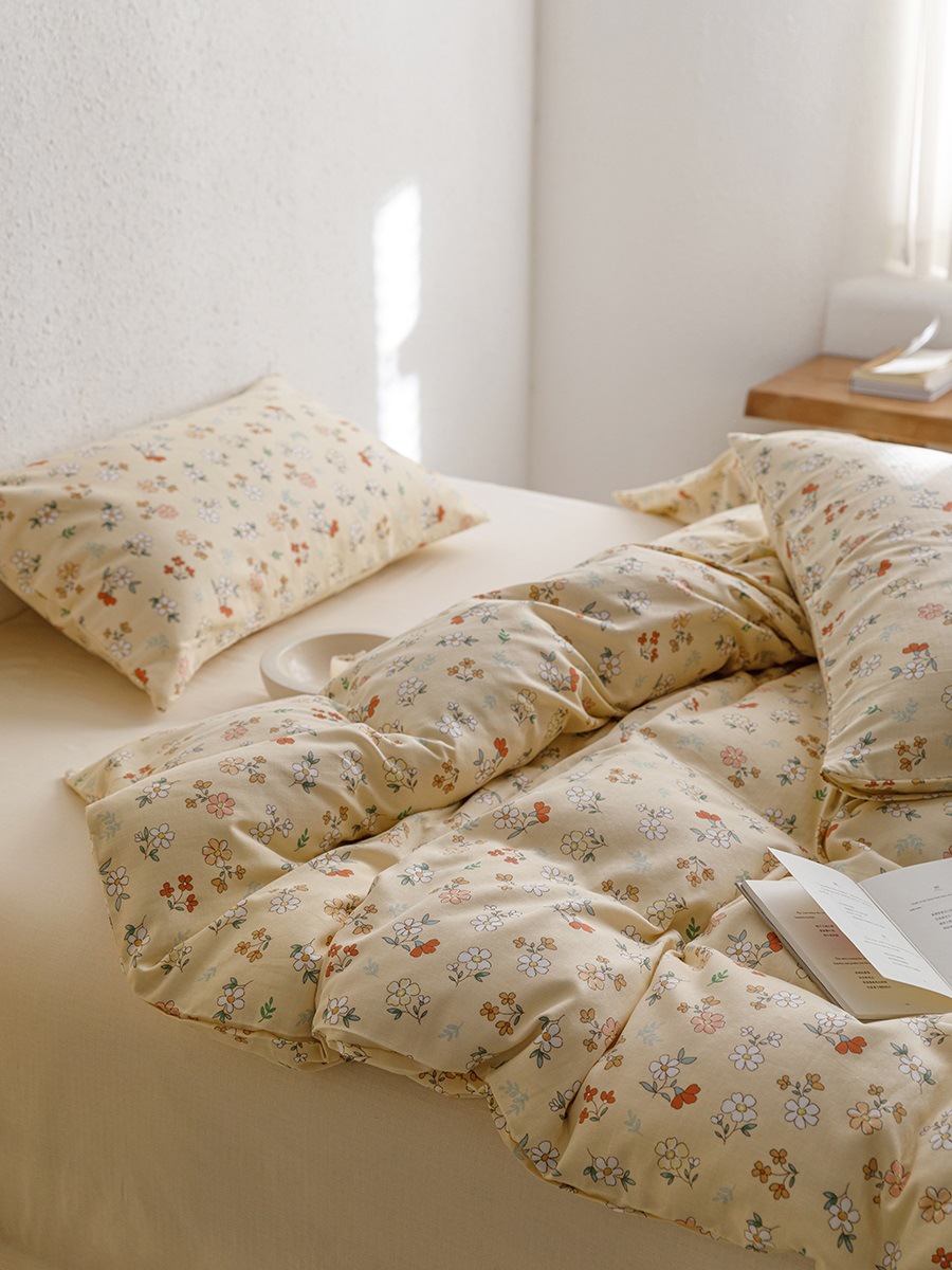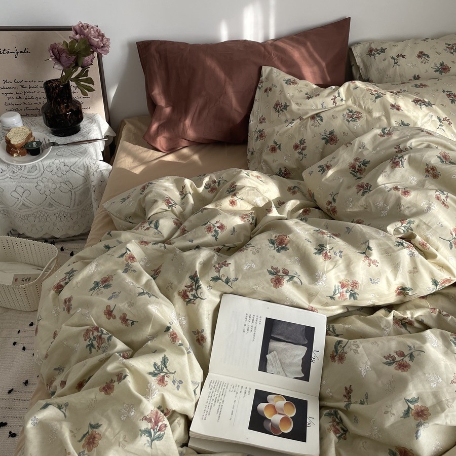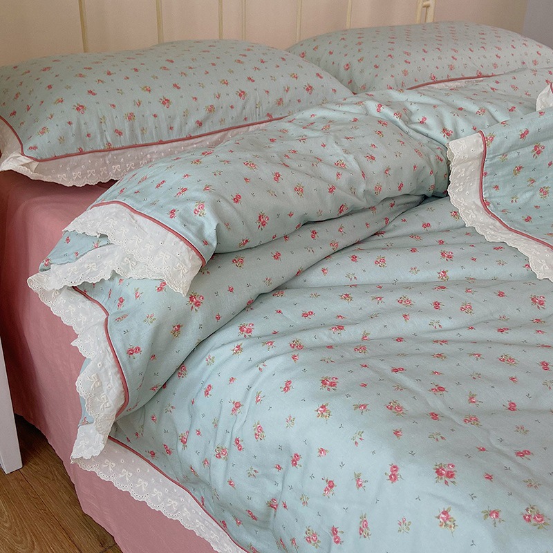 A類全綿二重糸四点セット春夏新品小清新田園砕花純綿布団カバー柔らかい裸寝