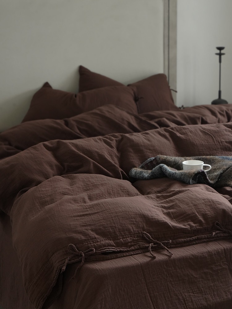 暗い赤色 ~ 二重の糸は日本式のシンプルな綿の4つのセットのベッドの上の赤ちゃんを縛って柔らかい肌の純綿を使うことができます。