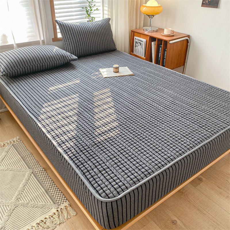 2024新型a類全綿色織水洗い綿大豆挟み綿ベッド笠三点セットシングルベッド笠90*200cm