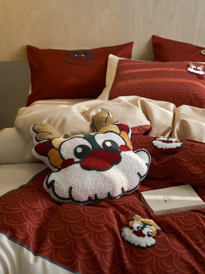 抱き枕新年のお祝いの赤いa類100本の綿の4点セットのかわいい龍タオル刺繍綿シーツベッド笠