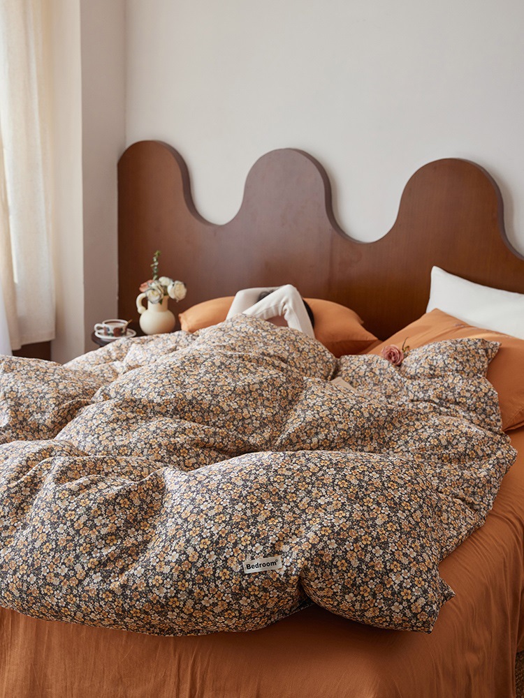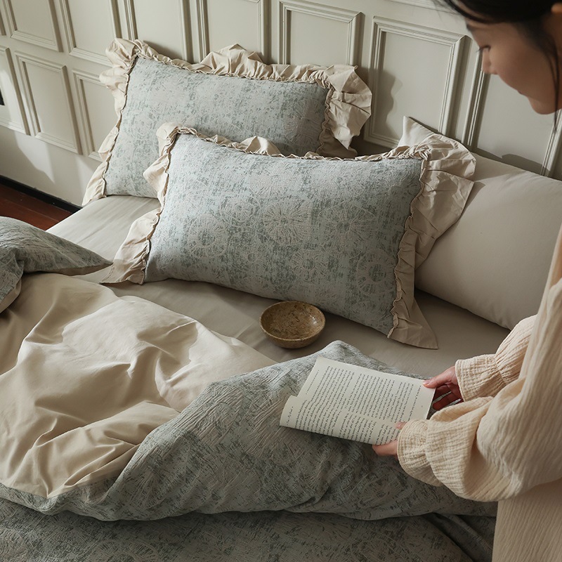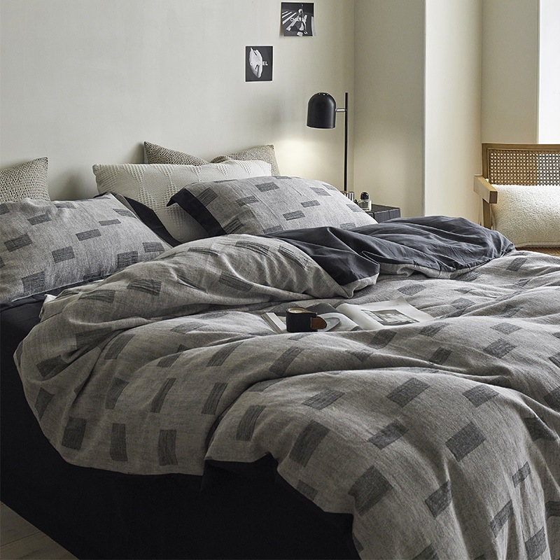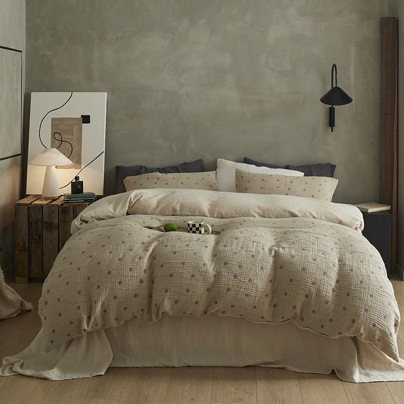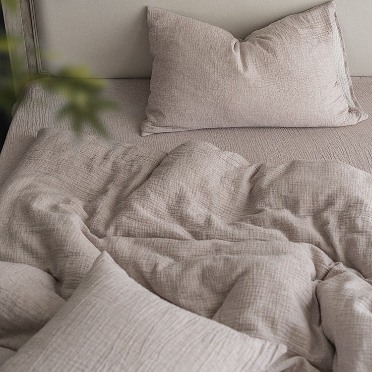 20% 亜麻80% 綿無地純色ベッド用品4点セット民宿風ふわふわモチモチ綿麻質感シーツ