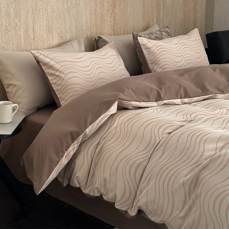 波紋ジャカード綿の肌に優しいジャカード4点セット-曲線条色織1.8mシーツ4点セット
