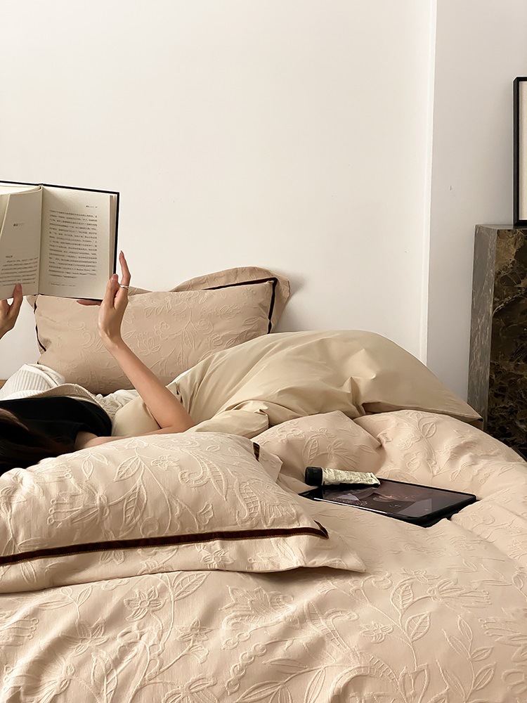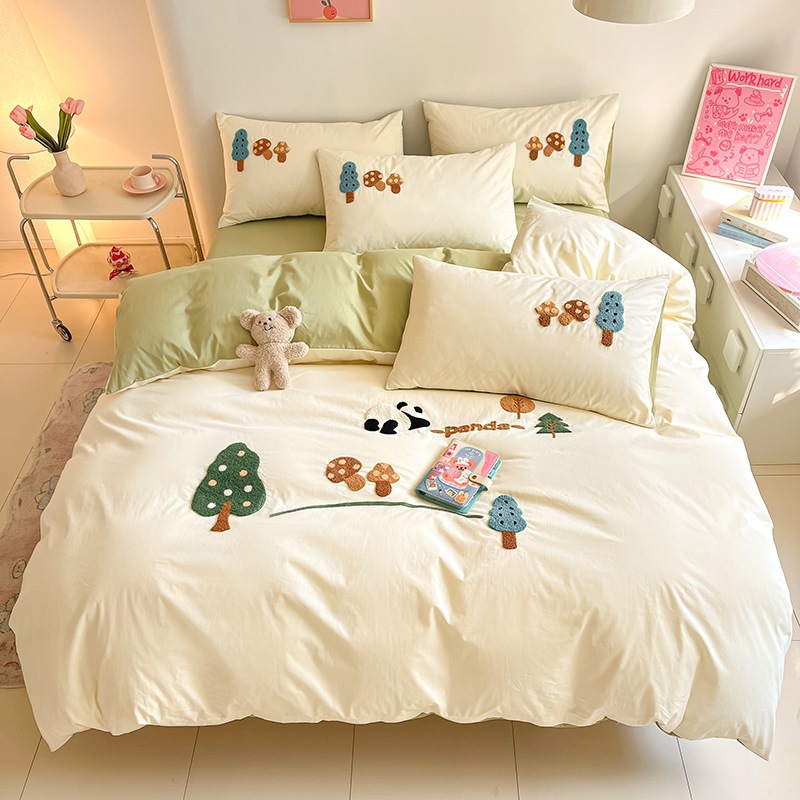 ツイル刺繍綿四点セットタオル刺繍かわいいins小清新純綿春夏新品ベッド布団カバー