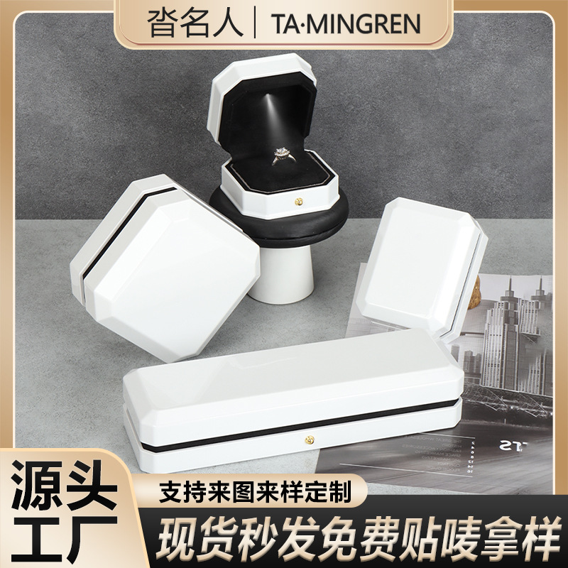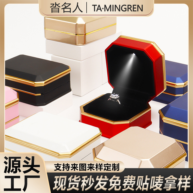 新しい八角形 LED ライトボックスジュエリーボックスハイエンドペイントリングボックスペンダントブレスレットジュエリー収納ボックス卸売