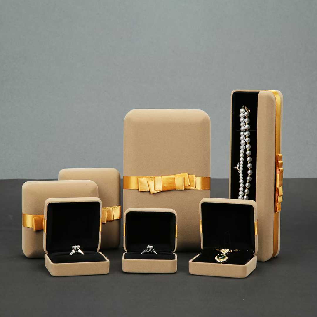 ベルベット直角レースジュエリーボックスライト高級ホットスタンピングリングボックスブレスレットペンダントネックレスジュエリー包装ボックスクロスボーダー
