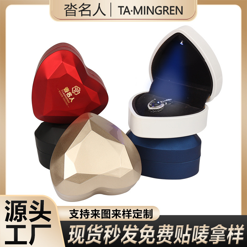 ピアノ漆ハート型ledライトアクセサリーボックス収納ボックス高級感プロポーズ指輪包装ボックスペンダントアクセサリーボックス