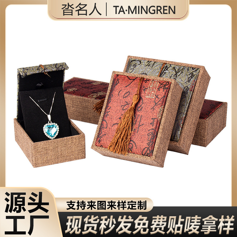 中国風の文字模様のタッセル付きジュエリーボックス、ブレスレット収納ボックス、指輪、ペンダント、アクセサリーボックス、ブレスレット、ジュエリー包装箱
