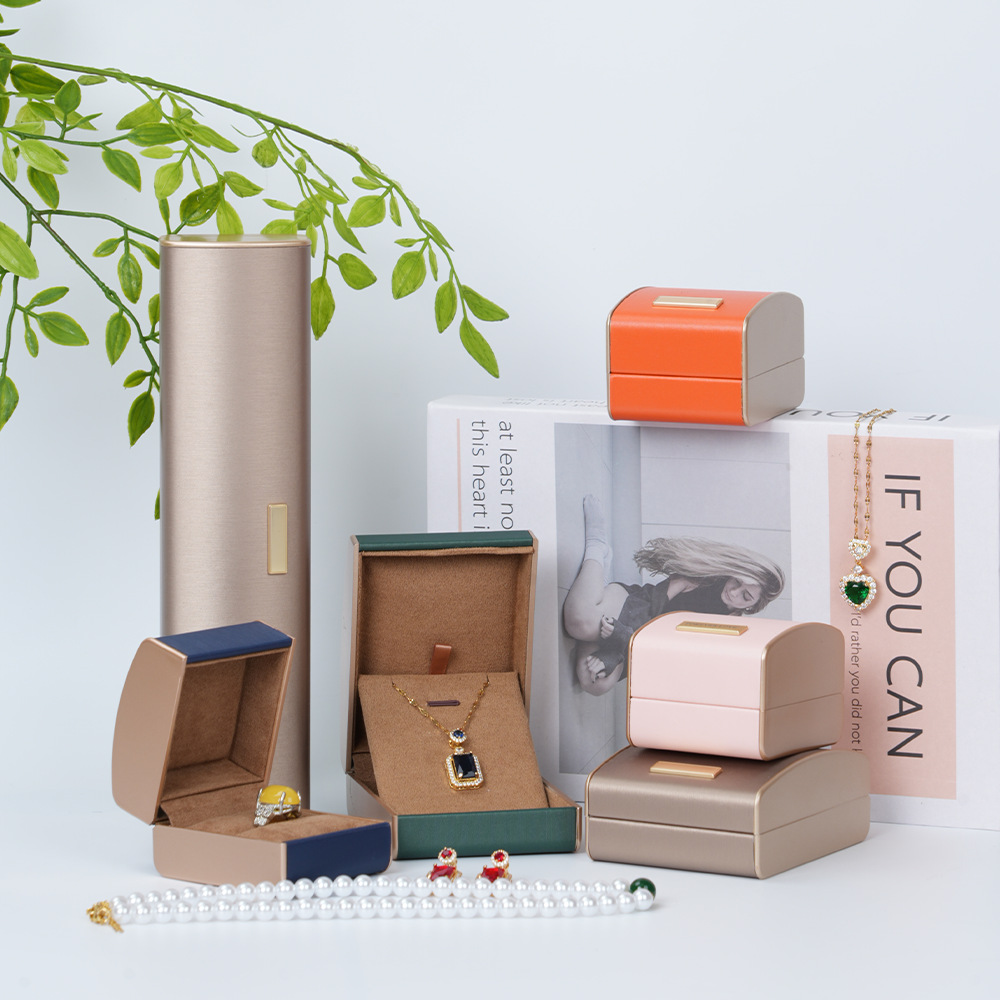 軽くて豪華なpu皮のアクセサリーの箱の指輪の箱のペンダントの高級感の宝石のアクセサリーの箱のブレスレットのネックレスの箱の金の標識の贈り物の箱