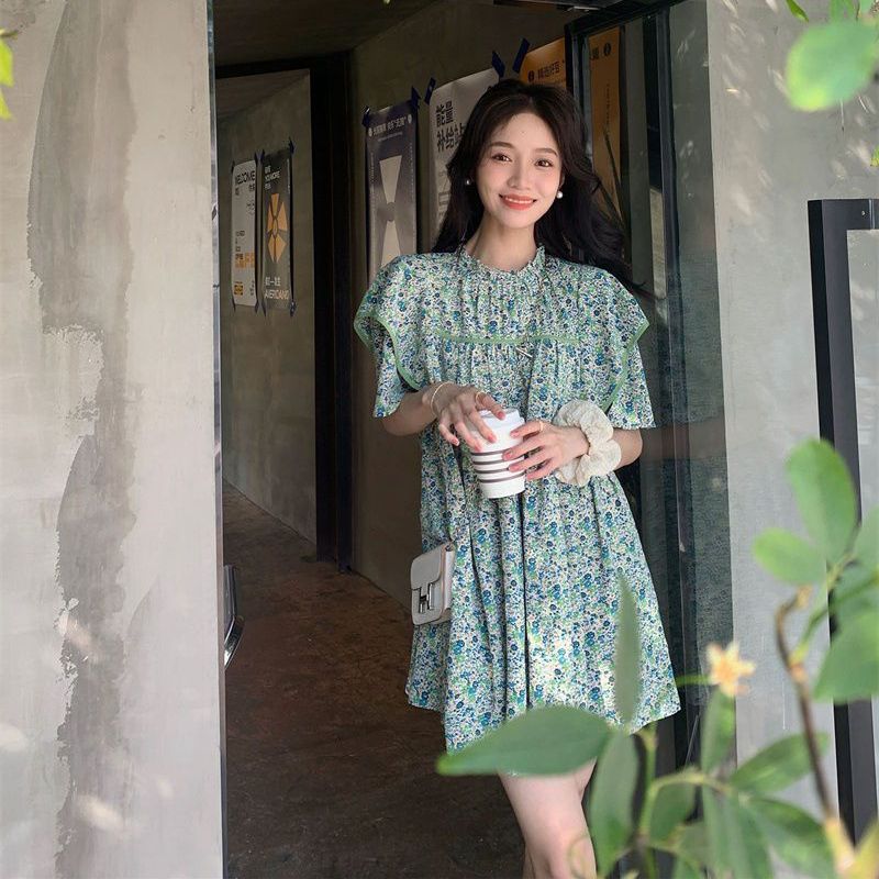 夏の新型のハスの葉の辺の小さい飛の袖の砕花のワンピースの子供の夏の小さい背の復古のゆったりしている子供のスカート