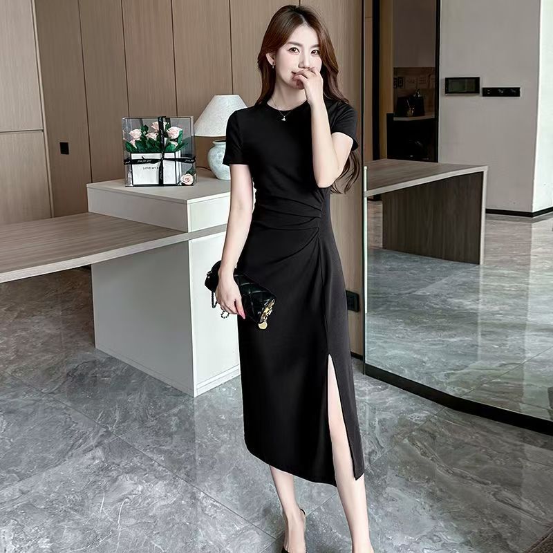 改良金、注文する前に実物の名媛が腰のしわのワンピースの女性の夏の色の新型の半袖の大衆を見てください。