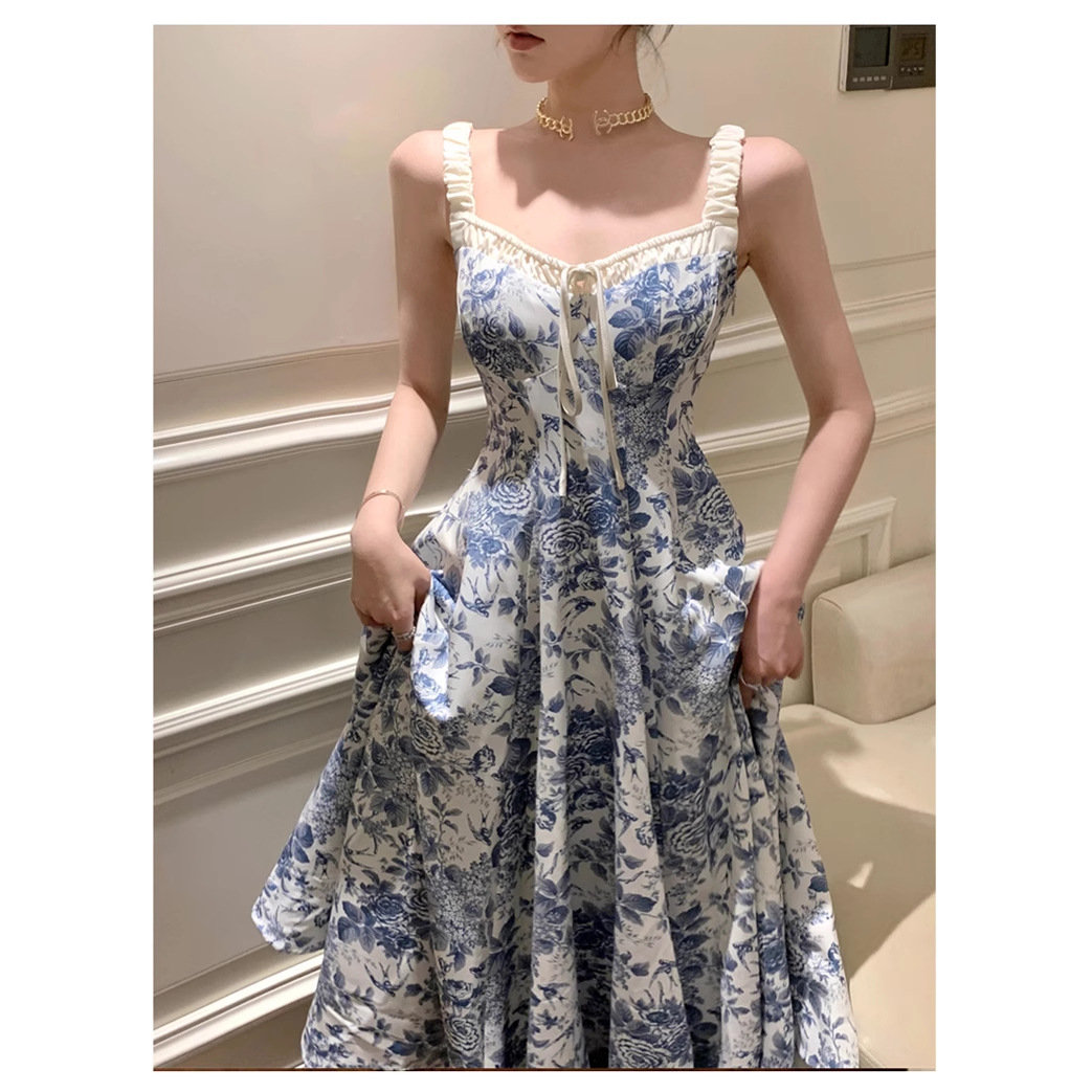 改良金は、注文する前に実物の春の新しい花のストラップのワンピースの女性の復古的な気質を見てください