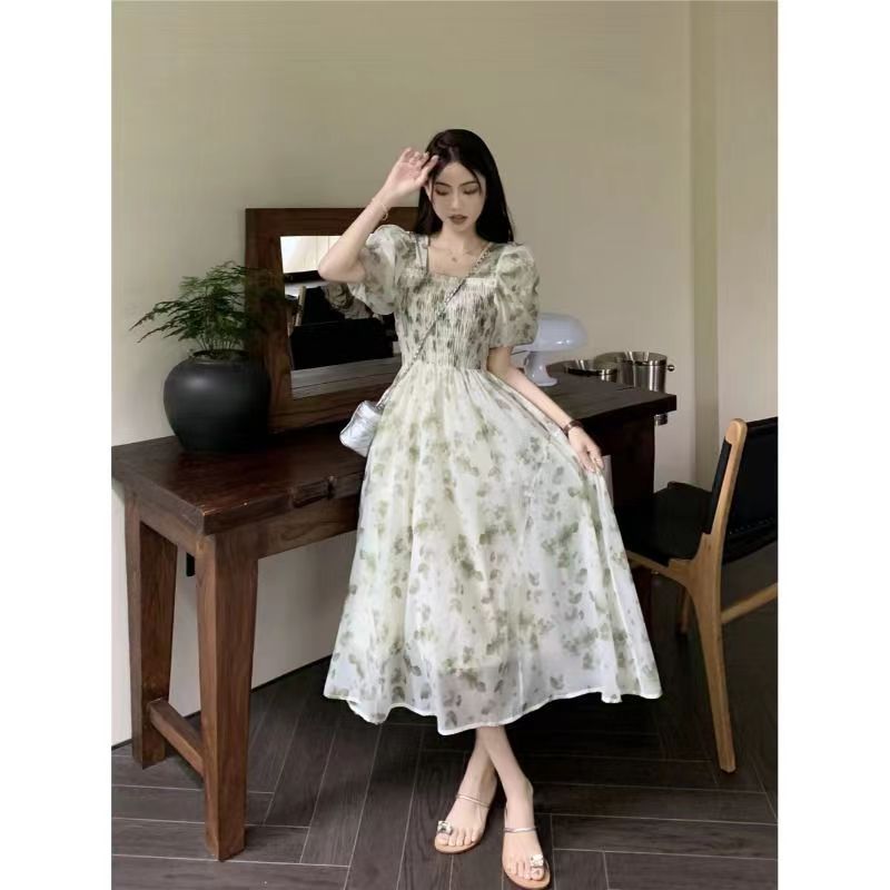 改良金は、注文する前に実物のフランスの田園風砕花ワンピース女性の夏の新しい襟を見てください