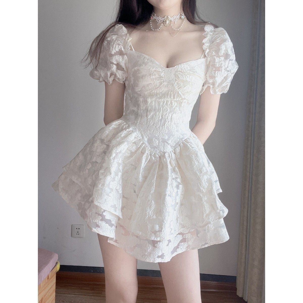 改良金は、注文する前に実物の泡芙の優しい白い月の光/夏の新しいジャカードの子供のスカートの泡を見てください