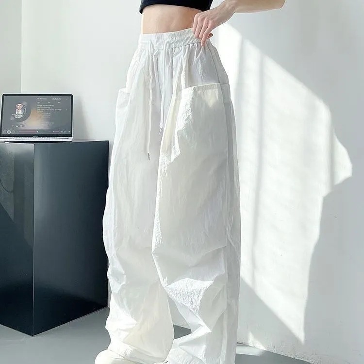 改良金は、注文する前に実物のアメリカのレトロな夏の薄いタイプの白い傘のズボンの女性の腰の高い夏の幅を見てください