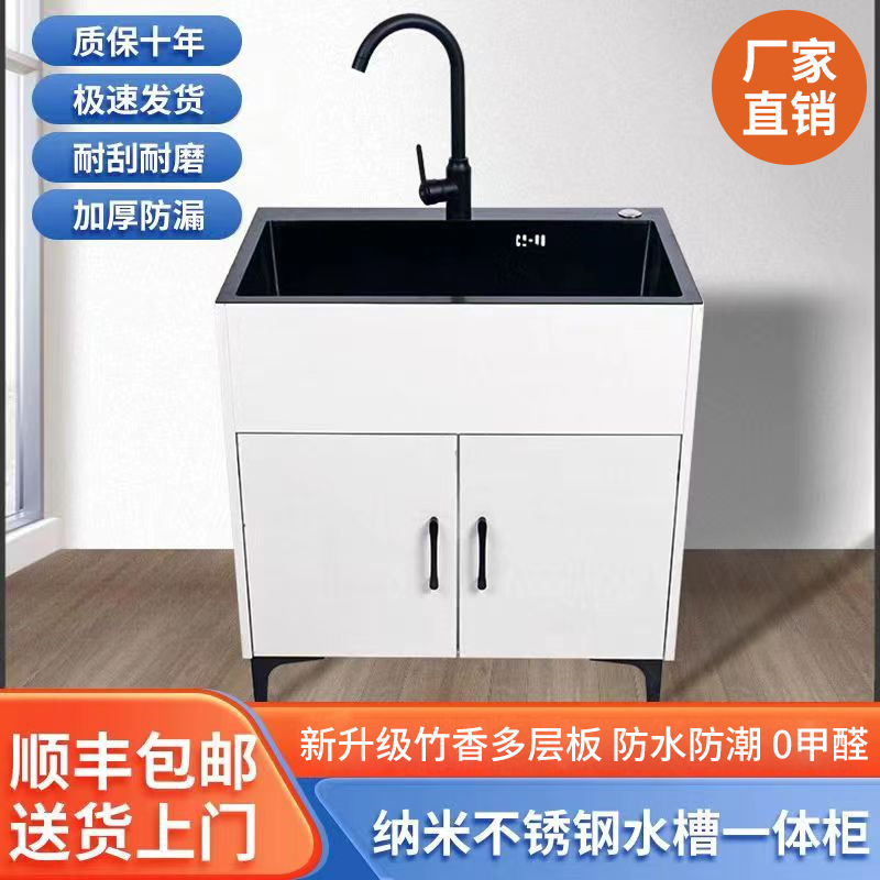 キッチンシンク一体型キャビネットステンレスシンク家庭用シングルおよびダブルシンク床置きシンプルキャビネットキャビネット付き