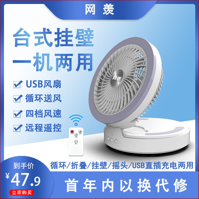 USB充電式吊り下げファン強風デスクトップファン寮超静音折りたたみ壁掛け空気循環ファン