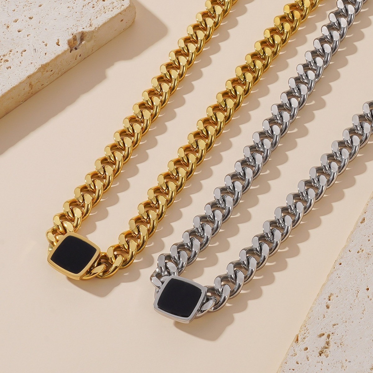 欧米の個性は誇張してチタン鋼の太い鎖のネックレスの小さい大衆を誇張して黒色の四角の鎖の鎖の首の鎖の女性の夏に色が落ちません。