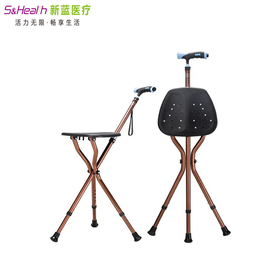 松葉杖老人滑り止め折り畳み腰掛け付き携帯松葉杖歩行器は高齢者の杖椅子に座ることができます。