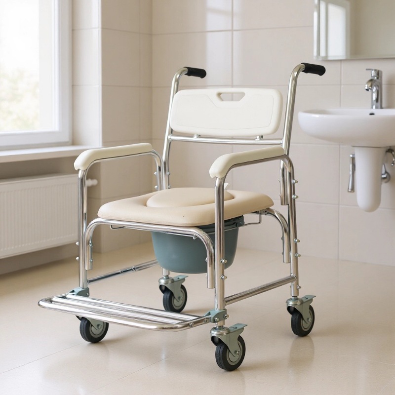 老人のプーリー付きの椅子は家庭用トイレの椅子を移動してシャワーを浴びます。