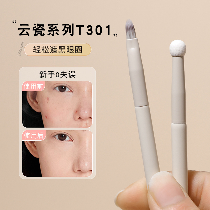 雲磁器t301二頭カバーブラシ毛先生と同じスポンジ涙溝くま目の細部のフラットヘッド化粧ブラシ