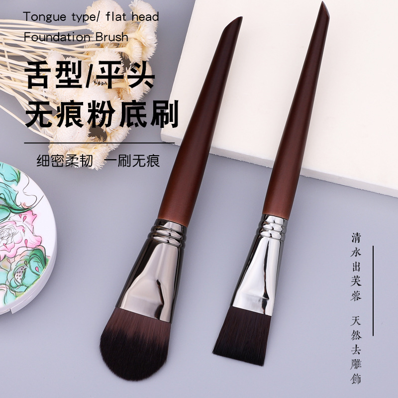 専門舌型無痕ファンデーションブラシ平頭マスクブラシカバーソフト毛実木ブラシ柄美化粧ツールメーカー卸売り