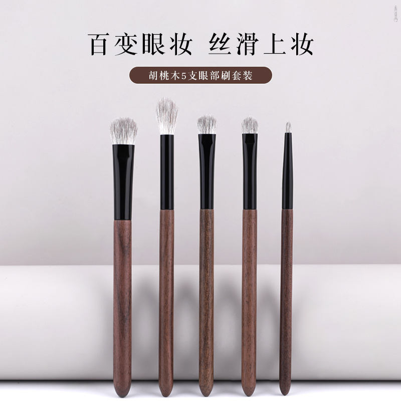 在庫あり 5 スノーフォックスファーアイブラシセットウォールナットブラシハンドルアイシャドウブレンディングブラシ滄州獣毛化粧ブラシ