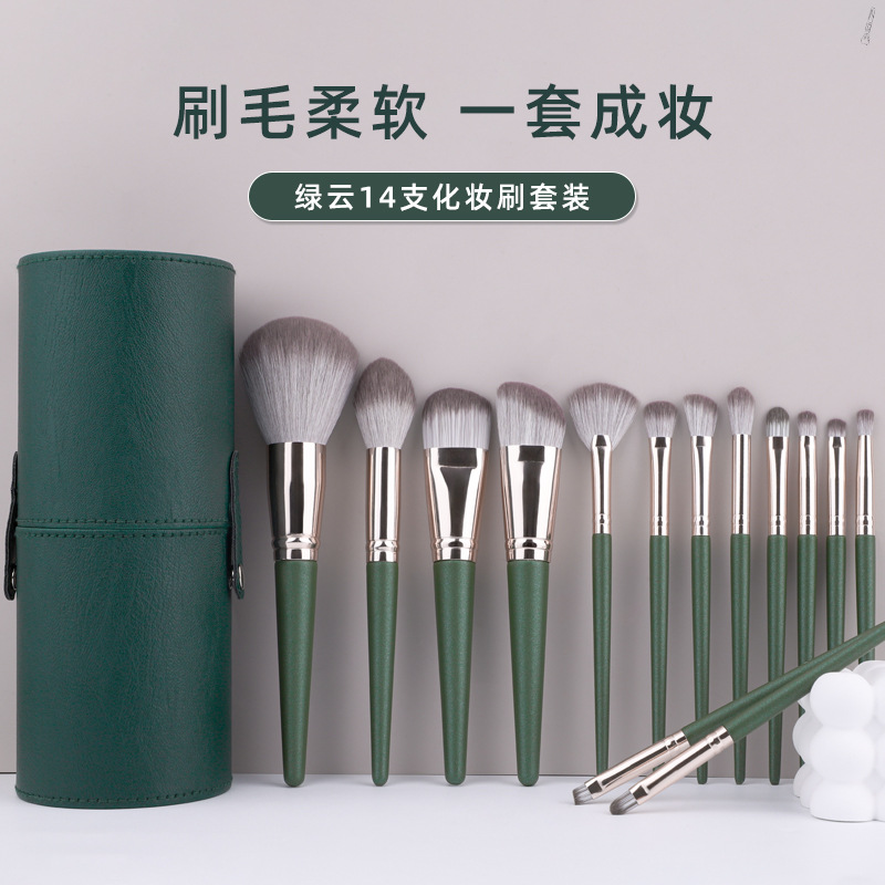 新しい 14 個グリーンクラウドシリーズメイクブラシセットルースパウダーアイシャドウ輪郭コンシーラーブラシ明るくカバーメイクブラシバッグ
