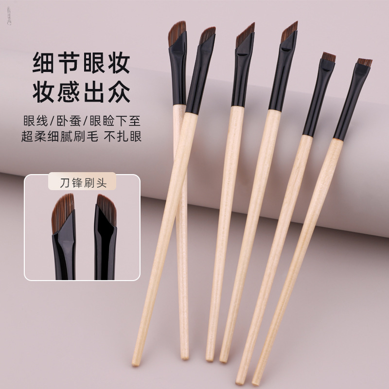 超薄刃ブラシまぶたの下から鎌のアイラインブラシの細部は蚕の平頭のストリーマの木の柄の目の化粧ブラシに寝ます。