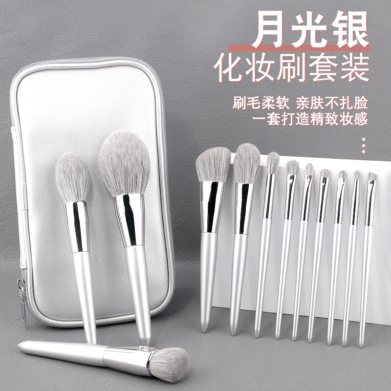 滄州 12 ピースムーンライトシルバーメイクブラシセット模造雪キツネの毛獣毛巨大なソフトパウダーブラシアイシャドウコンシーラーブラシ
