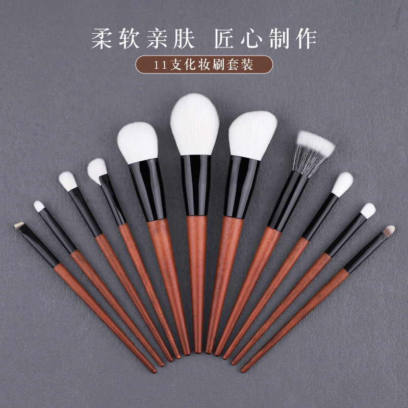 新しい11本の化粧ブラシセットは、散り散りになったアイシャドウの鼻の影のチークの色を消して、化粧道具を収納します。