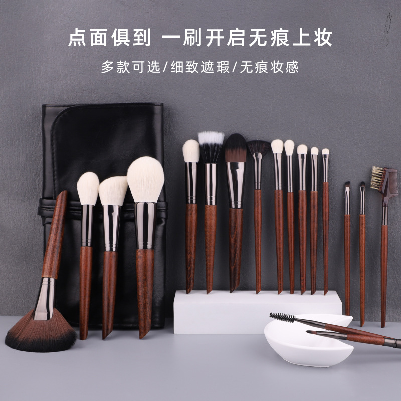 新品ヤケヤキ18本動物繊維毛セットプロ化粧師セット黒白色刷毛化粧ブラシ