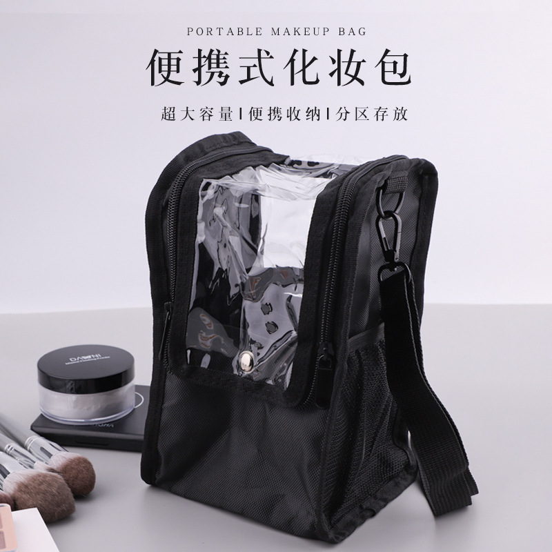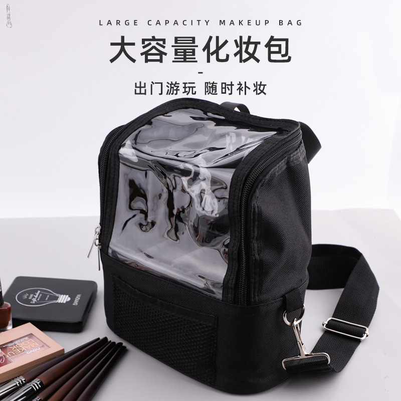 専門の化粧師と化粧バッグの現場のロケ地の専門の大容量の透明は斜めに手提げの化粧バッグのリュックサックにまたがります。