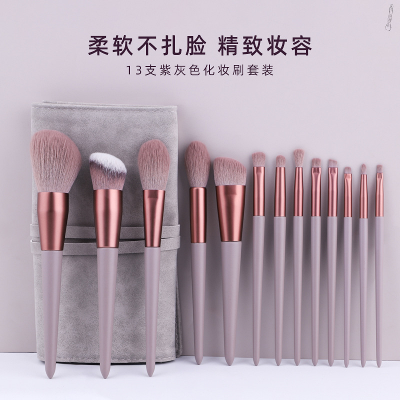 新型の柔らかい毛の紫の灰色の13本の化粧のブラシのセットの散粉の斜めの頭のファンデーションのカバーのチークはアイライナーのブラシを修理します。