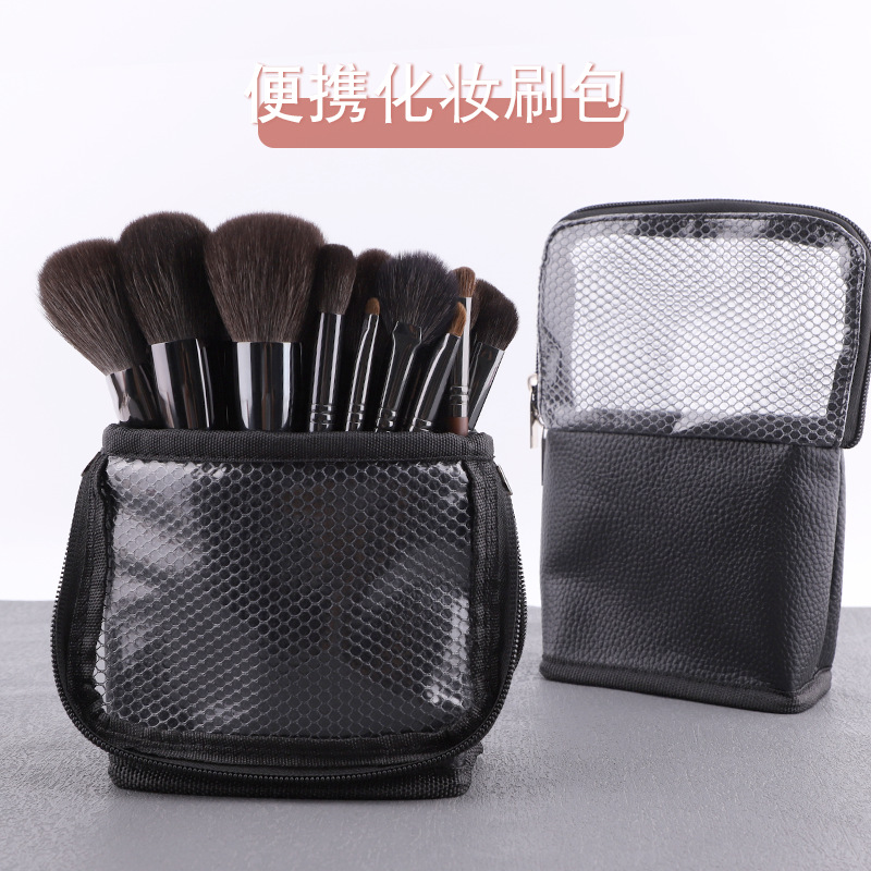 化粧ブラシバッグ携帯用大容量収納バッグ外出化粧バッグ防水ダブルジッパー化粧キット