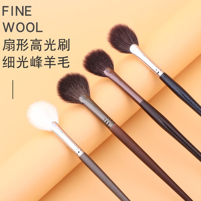 扇形の高光ブラシの余粉は細かな光の峰のウールの動物の毛の単本の滄州の手作業の化粧ブラシの化粧道具を持ちます。