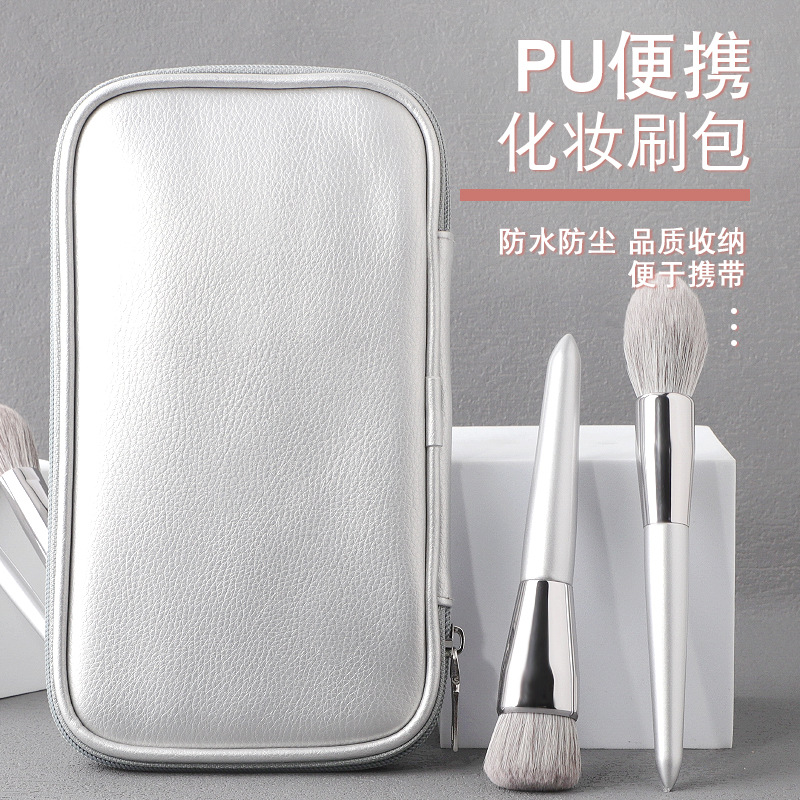 新型防水多機能銀色化粧バッグ化粧ブラシファスナー収納バッグ高級感ネットレッド携帯puソフト