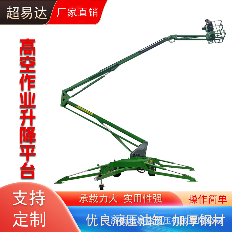 トレーラー折腕昇降機高所静音作業台360度回転昇降曲腕トレーラー昇降平