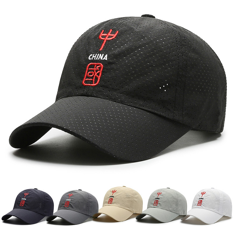 夏の速乾野球帽、流行の中国風日よけ帽子、レトロな文字刺繍入りアウトドア日焼け止めキャップ、越境販売