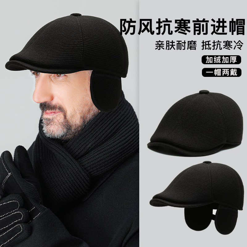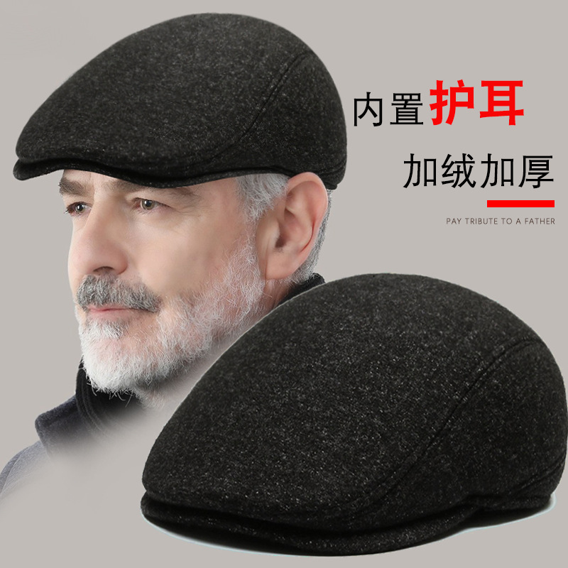 秋冬の新型アウトドア自転車保温短軒ベレー帽の中で高齢者男性はカジュアルに耳の前に入る帽子を厚くします。