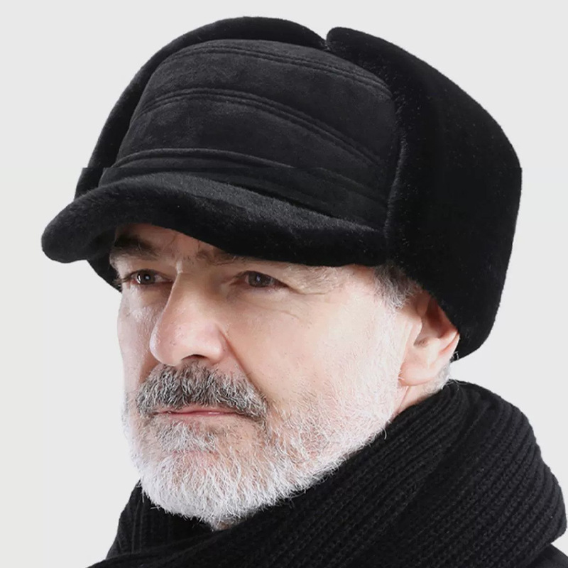 帽子の男性は冬にベルベットをつけて保温している平頂帽のベルベットの屋外防寒平頂帽の中高年の耳保護帽