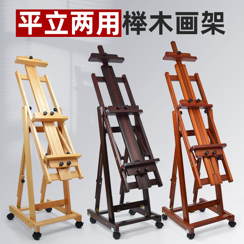 メーカー直販平立両用滑車付き赤ケヤキ油画架ケヤキスケッチ写生画架広告展示棚