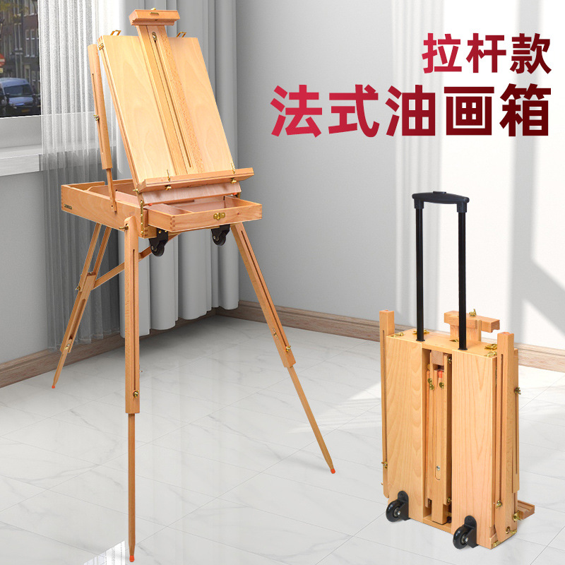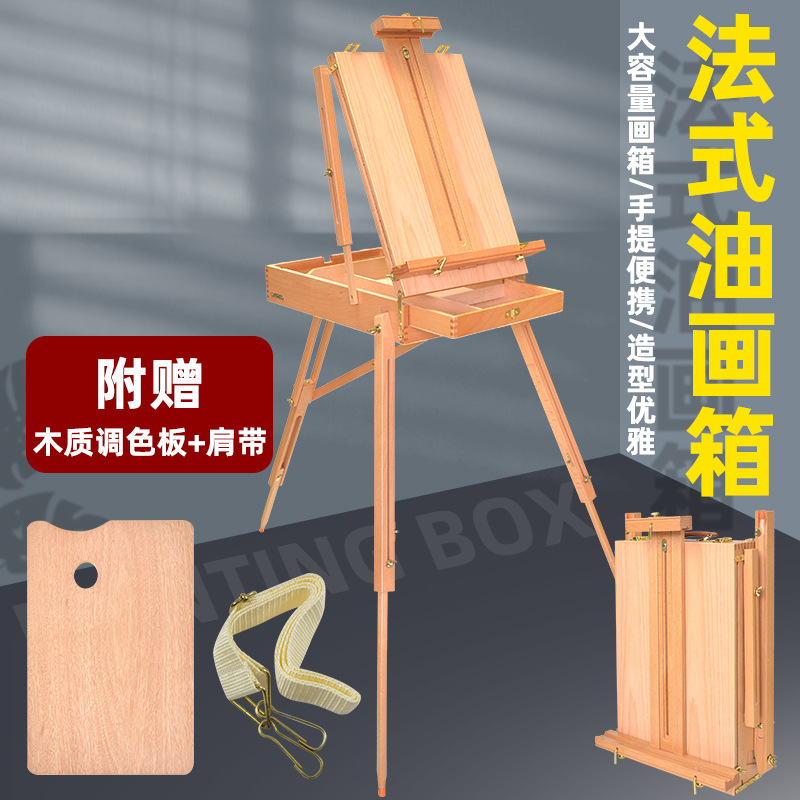 ケヤキ単層引き出し式手提げ美術画箱木製写生デスクトップ画架油絵画架スケッチ画架画箱