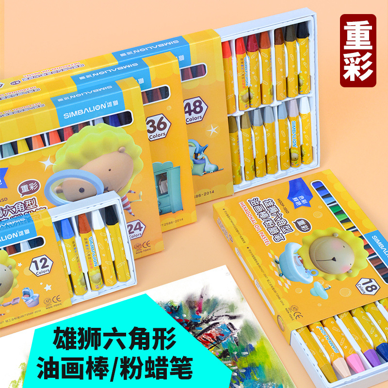 雄獅子油画棒児童安全幼稚園12色24色36色赤ちゃん汚れない手重彩六角形クレヨン