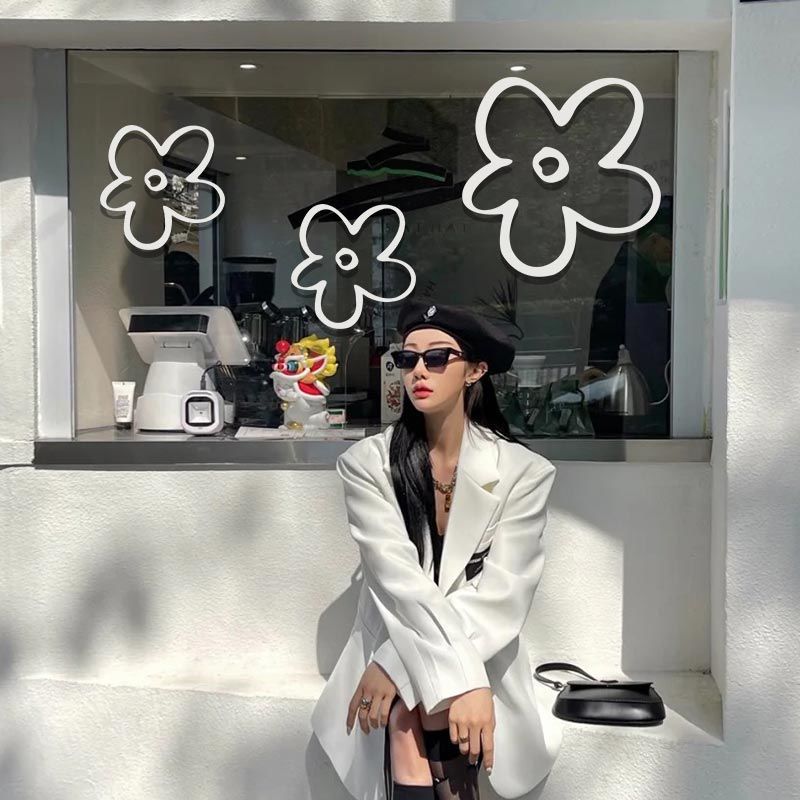 可爱花朵派大花ins网红服装奶茶鲜花店铺玻璃门橱窗拍照装饰贴纸