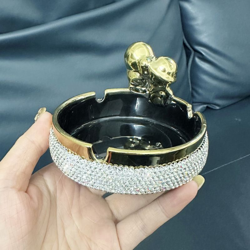 ダイヤモンドがちりばめられた軽量高級セラミック灰皿、飛散防止、ハイエンドのクリエイティブなパーソナライズされた装飾品、リビングルーム、ホームオフィス、トレンディな灰皿