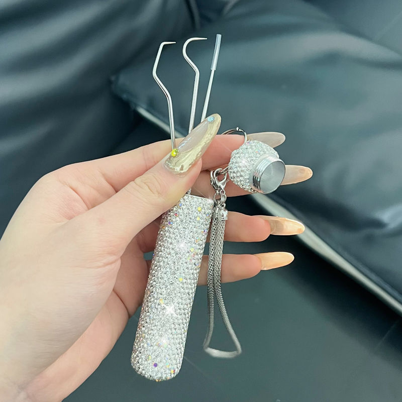 国境を越えた外国貿易ダイヤモンドがちりばめられた豪華な 304 ステンレス鋼のつまようじ、歯を掘るためのポータブル特別なツール