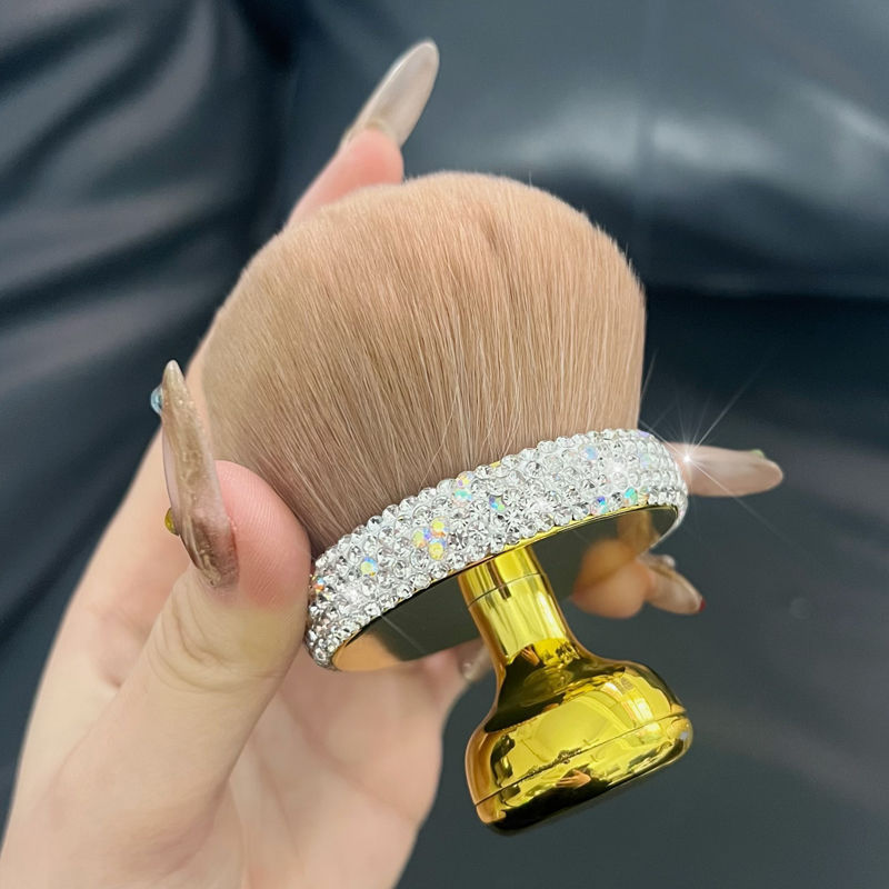 ダイヤモンドがちりばめられた大型パウダーブラシ、パウダーブラシ、ファンデーションブラシ、高級毛の新しいブラシ、トレンディなゴールドハンドル、ガールフレンドギフト