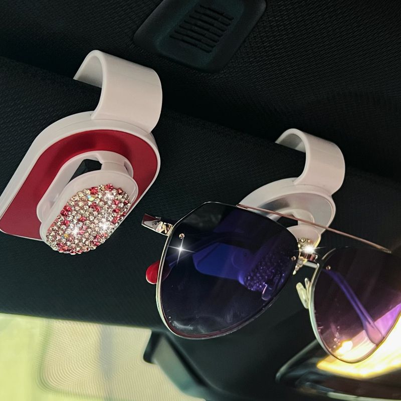 車のサンバイザー用の新しいダイヤモンドがちりばめられたメガネクリップ、サングラスクリップ、ユニバーサルカーカードIDクリップ、女性向けの多用途