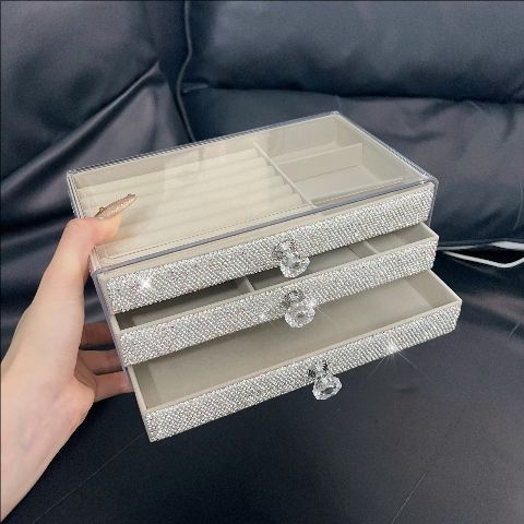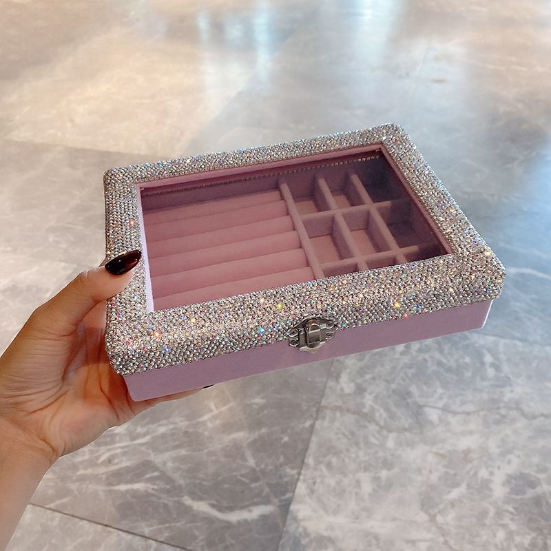 ダイヤモンドがちりばめられたベルベットのジュエリー収納ボックス、新しいイヤリング、イヤリング、ネックレス、ジュエリーボックス、ハイエンドで絶妙な引き出しタイプ